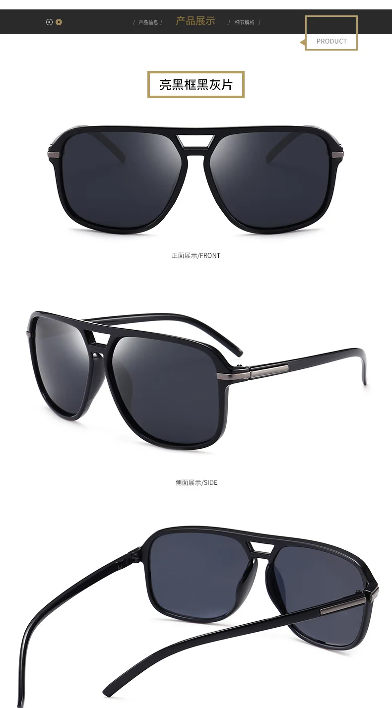 Polarized Sunglasses Men Fashion Double Bridge Square Frame Sun Glasses Brand Designer Unisex Driving Goggles Gafas De Sol UV400