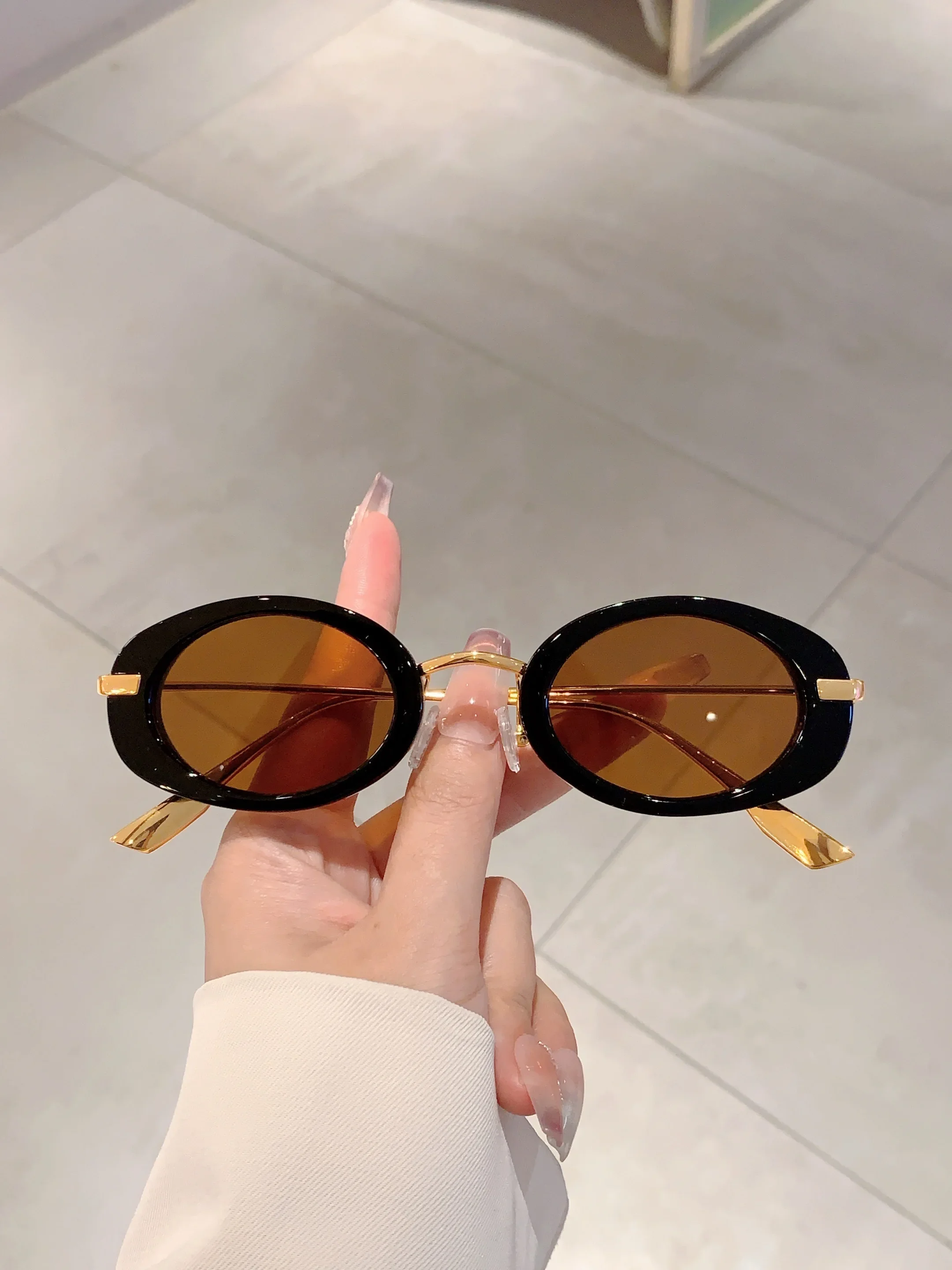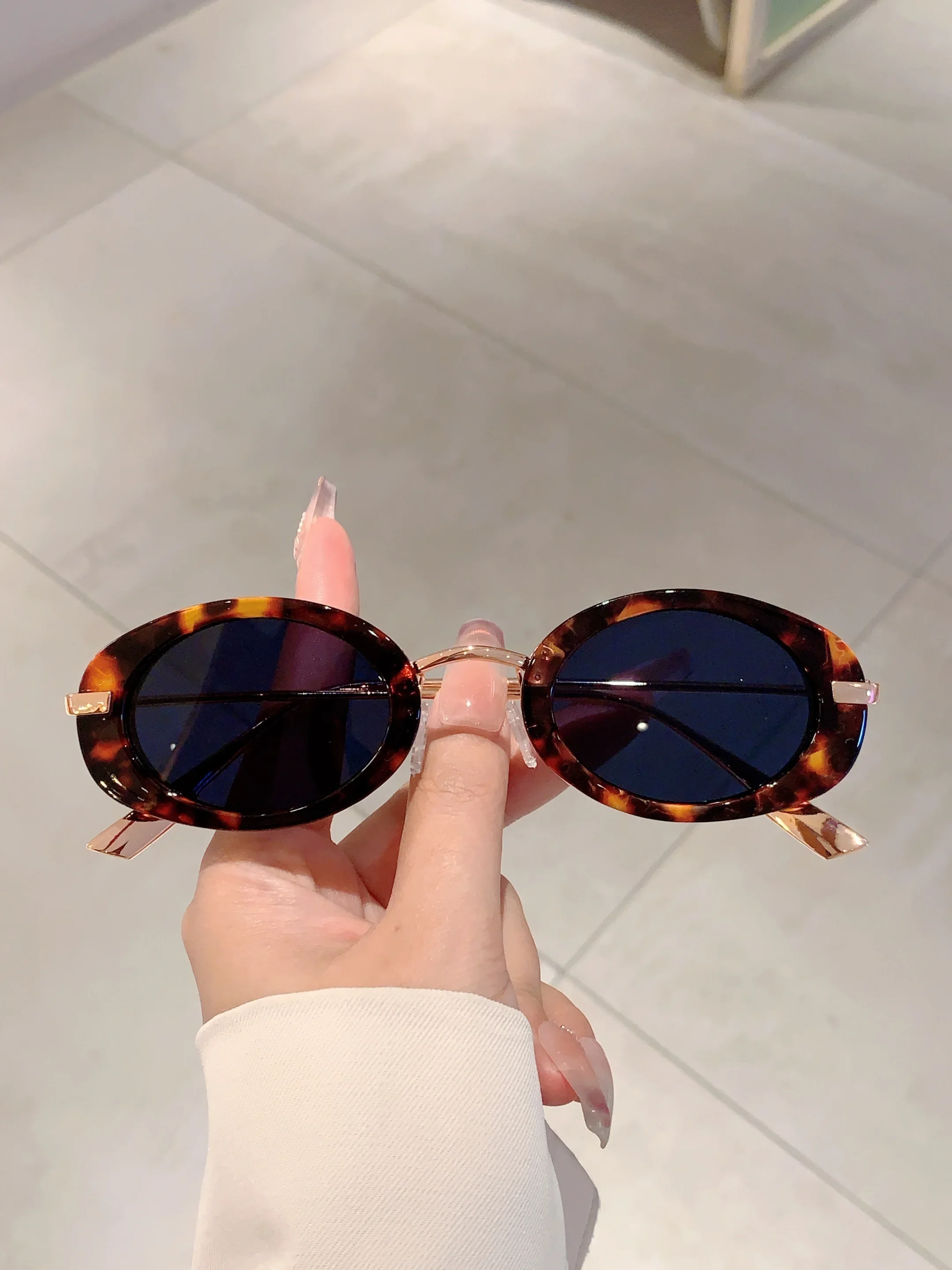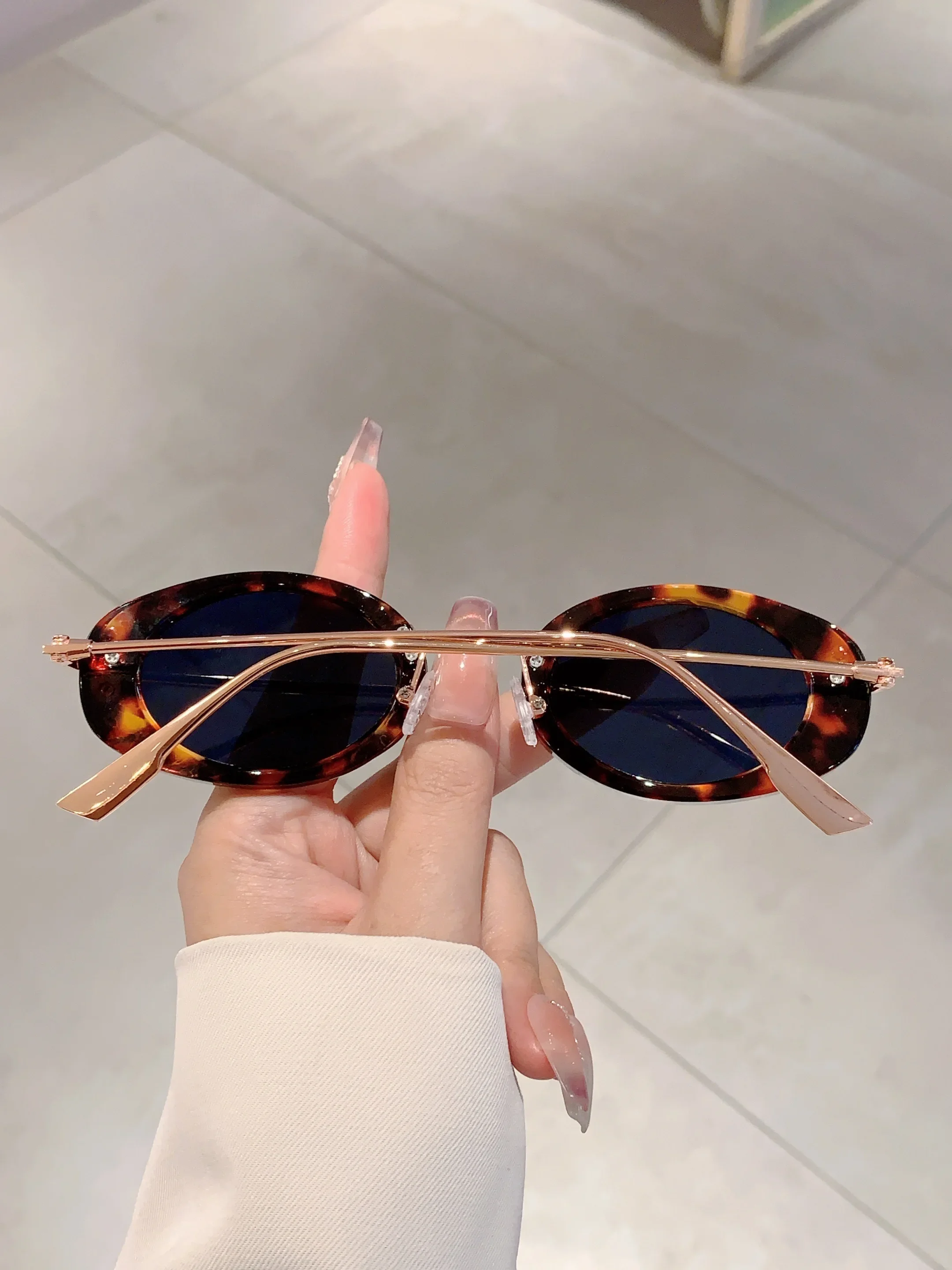Small Oval Frame Retro Sunglasses Luxury Metal Designer Shades Women's Trendy Fashion Brand Leopard Beach Sun Glasses for Lady