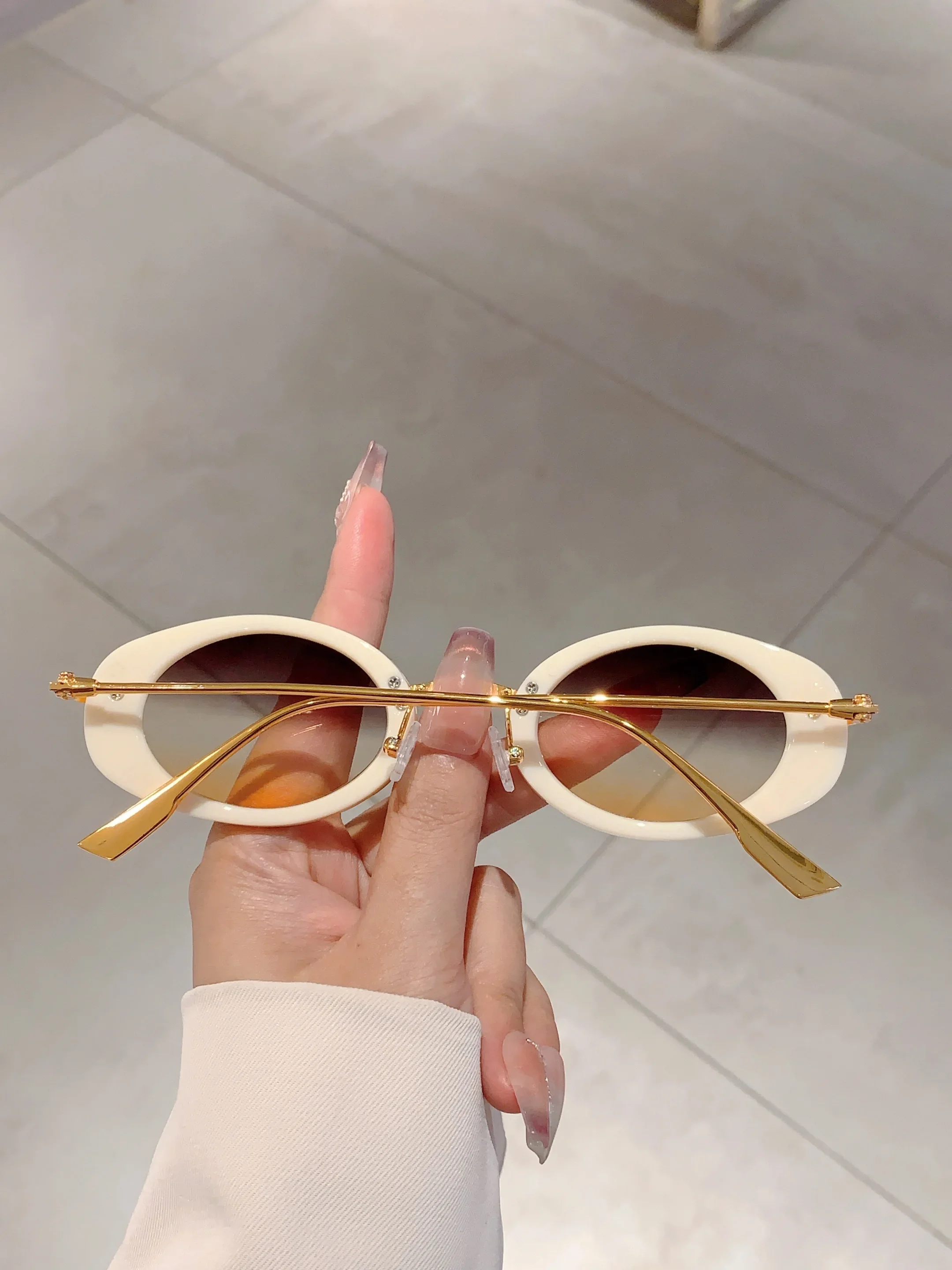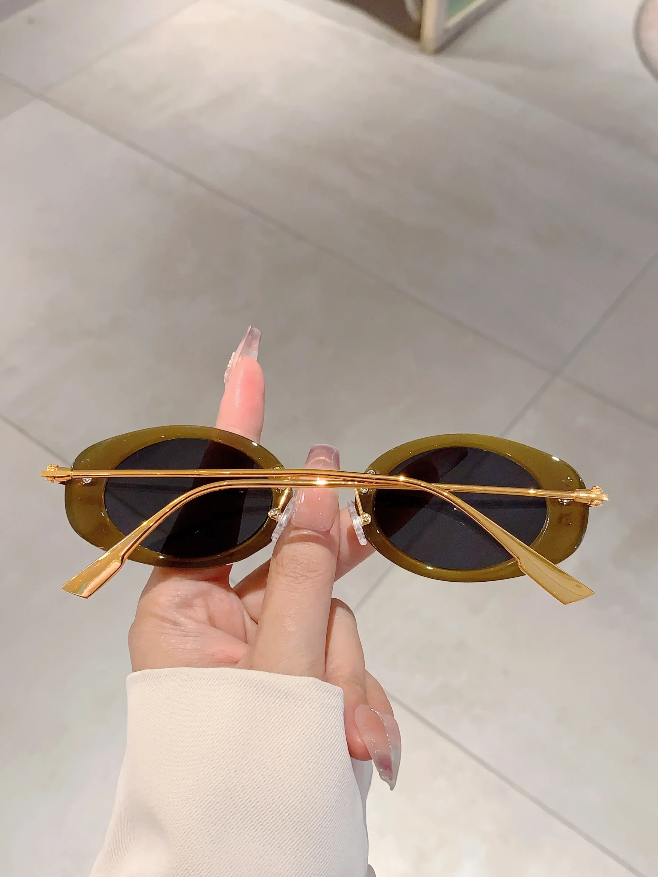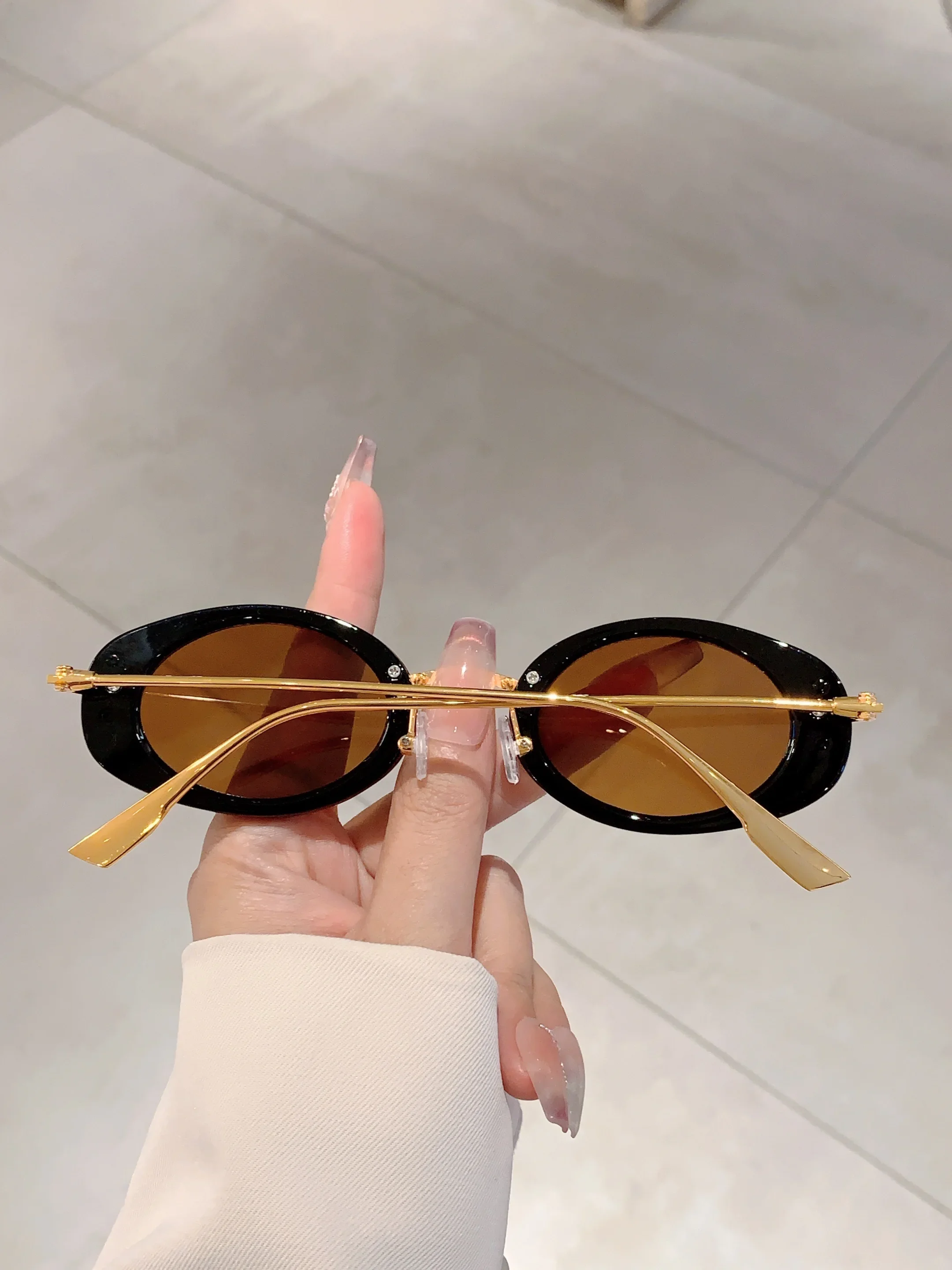 Small Oval Frame Retro Sunglasses Luxury Metal Designer Shades Women's Trendy Fashion Brand Leopard Beach Sun Glasses for Lady